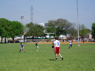 Team 1 was doing good to drive the ball out of their own end zone. Rhino, Romo and Papi could do nothing early on to drive them into the end zone. Romo got lucky toward the middle of the game and found Papi, Iman, Magic and Rhino for TD's... but after one too many interceptions, Butterfly took over the reigns and ne'er looked back the rest of the afternoon.